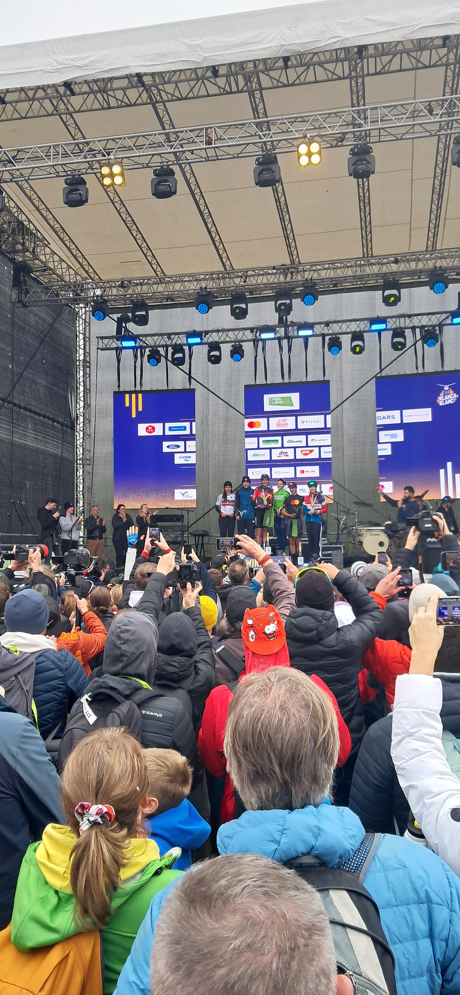 Die letzten Meter waren trotz widriger Wetterverhältnisse, starkem Nebel, von hunderten Zuschauern geprägt und es kam gleich einer Stimmung bei einer großen Rundfahrt. Genial.