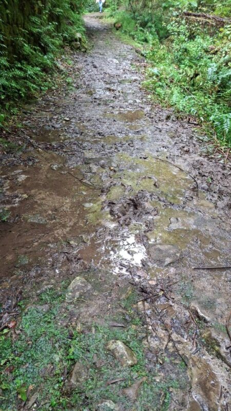 Wir hatten das Pech, das uns eine Starkgewitterfront erwischte. Während des Laufens, ließ der Sturm und der peitschende Regen etwas nach. Die Strecke lief durchwegs durch breite Waldwege und der Boden war extrem rutschig, einige Athleten hatten unfreiwillig Bodenkontakt.