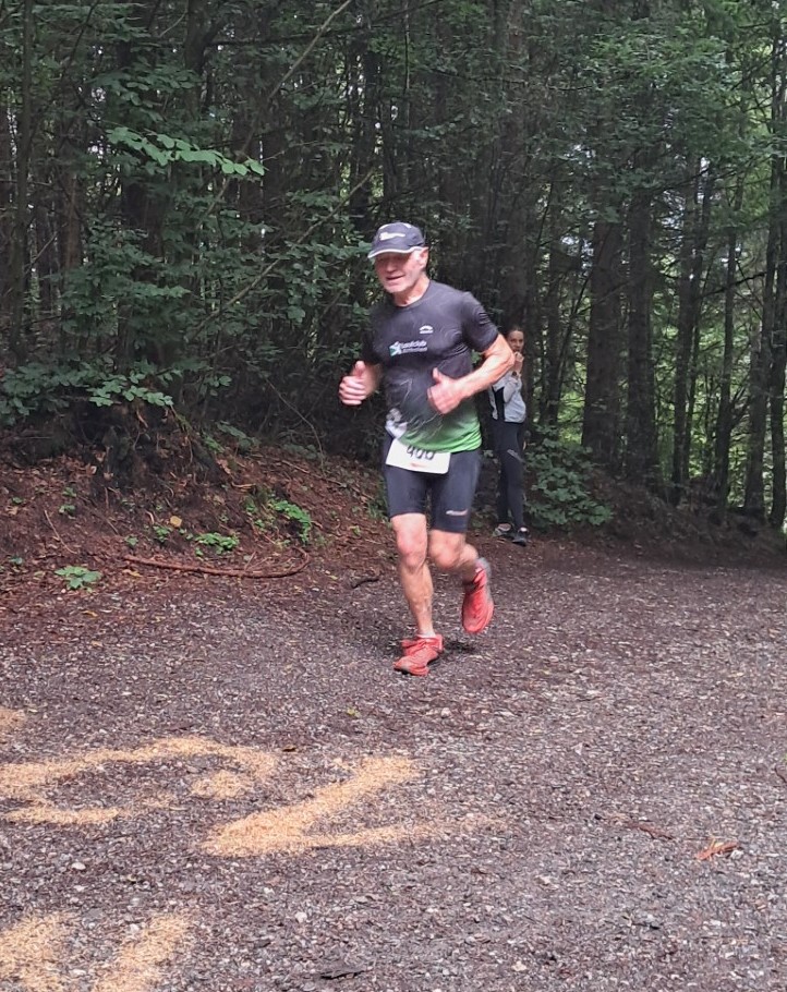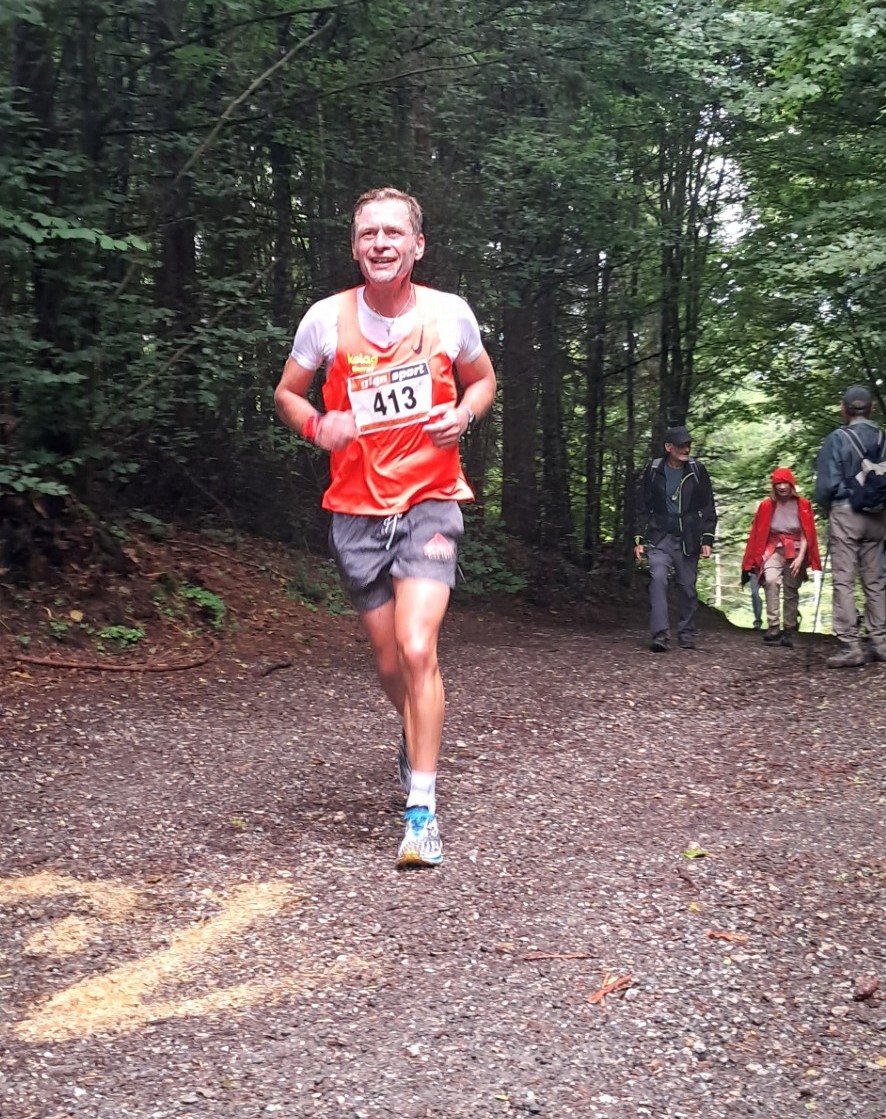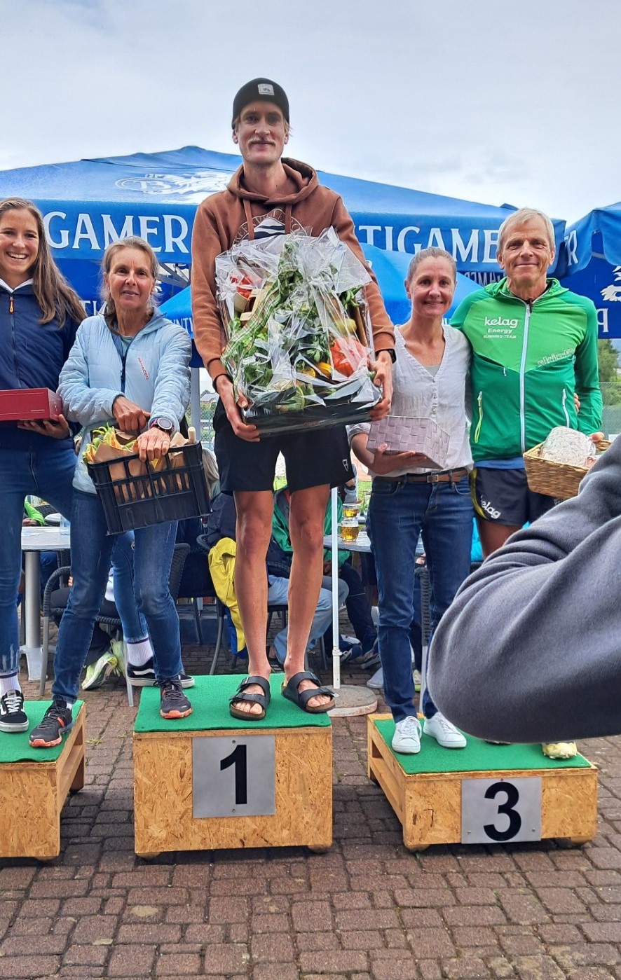 Er lief beim 5 km Lauf lief er als 3. durchs Ziel und landete damit in seiner AK auf Platz 2.